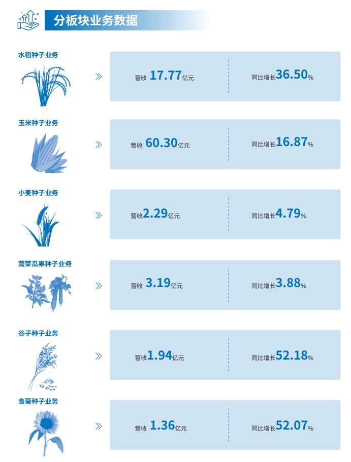 同期,公司水稻种子营收17.77亿元,同比增长36.50%,市集占有率18%,位各国内第一。