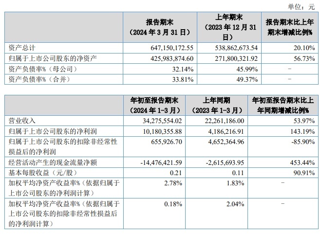 2024年第一季度,公司毛利率为37.97%,同比飞腾2.18个百分点;净利率为20.40%,较上年同期飞腾3.48个百分点。每股收益为0.0748元,加权平均净钞票收益率为6.39%。