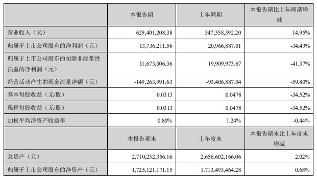同日线路的2024年一季报泄露,2024年第一季度公司收场商业总收入2.07亿元,同比增长16.56%;归母净利润7688.17万元,同比着落48.95%;扣非净利润7251.14万元,同比着落29.47%。