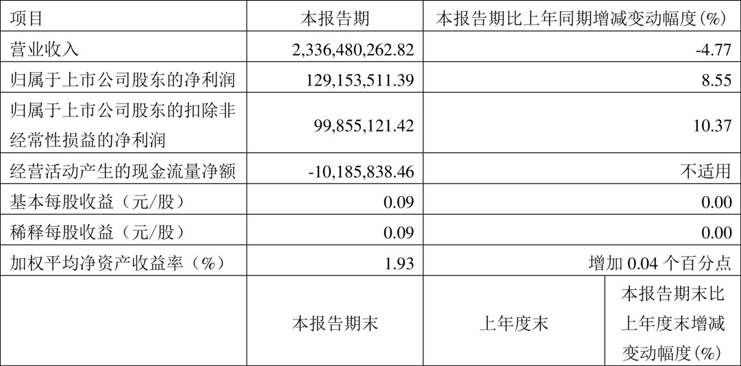 苏垦农发2024年一季度净利润1.29亿元,同比增长8.55%;