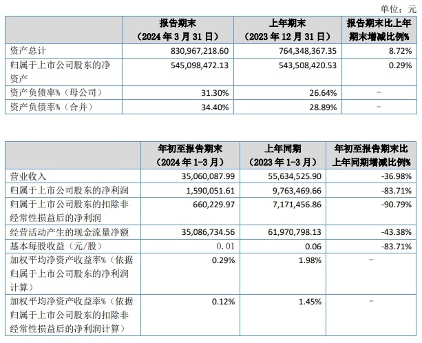 4月26日,A股上市公司秋乐种业发布2024年一季度功绩评释。2024年第一季度,公司收场商业总收入3506.01万元,同比着落36.98%,净利润159.01万元,同比着落83.71%,基本每股收益为0.01元。
