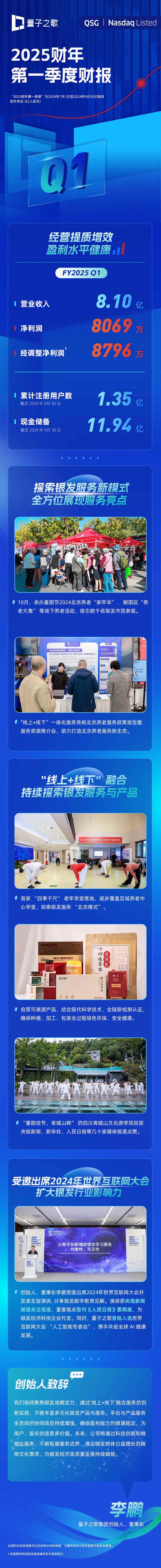 11月27日,量子之歌(QSG.US)公布了2025财年第一季度财报。财报暴露,量子之歌本财季总营收8.1亿元;净利润达8069万元,同比增长21.0%,净利润率为10.0%。戒指2024年9月30日,量子之歌的注册用户总额达到1.35亿,用户呈高质料增长态势。